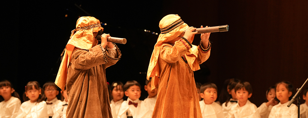 クラスや礼拝堂で、毎日心静かにお祈りをし、讃美歌を歌います。ひとり一人が神様に愛されているかけがえのない存在であることを知り、自分と他者を大切にする心を育てます。
