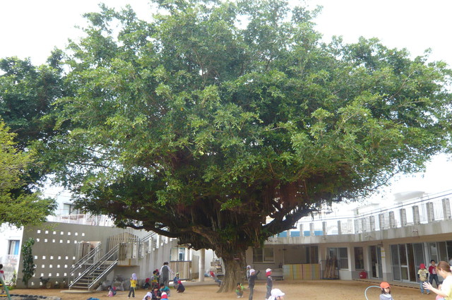 創立時に植えられた園庭の大きなガジュマルの木のようにたくましく生きていく力、自然や人に触れながら様々な経験を通して自分で出来た達成感をともに喜び、伸び伸びと育ちあうことを学びます。