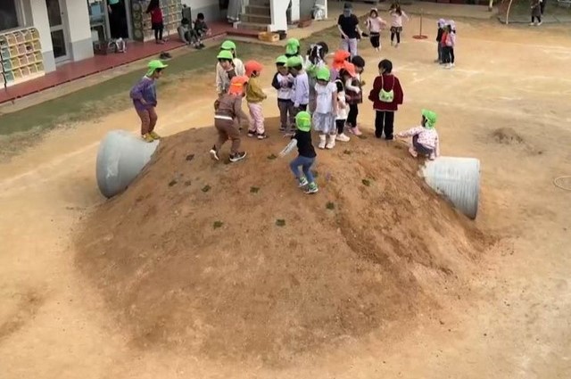 長年にわたり子どもたちを見守ってきた、当園のシンボル「ガジュマルの木」の跡地が「築山」へと生まれ変わり、新たな遊び場となりました。